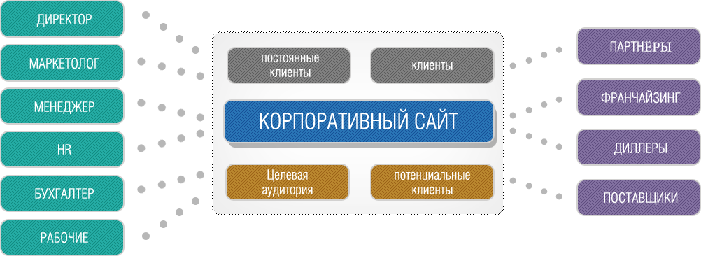 Корпоративный сайт – это web-сайт, цель которого в организации коммуникации и взаимодействия компании с клиентами, партнерами, СМИ, государственными органами, а также между различными отделами компании, филиалами и отдельными сотрудниками. |